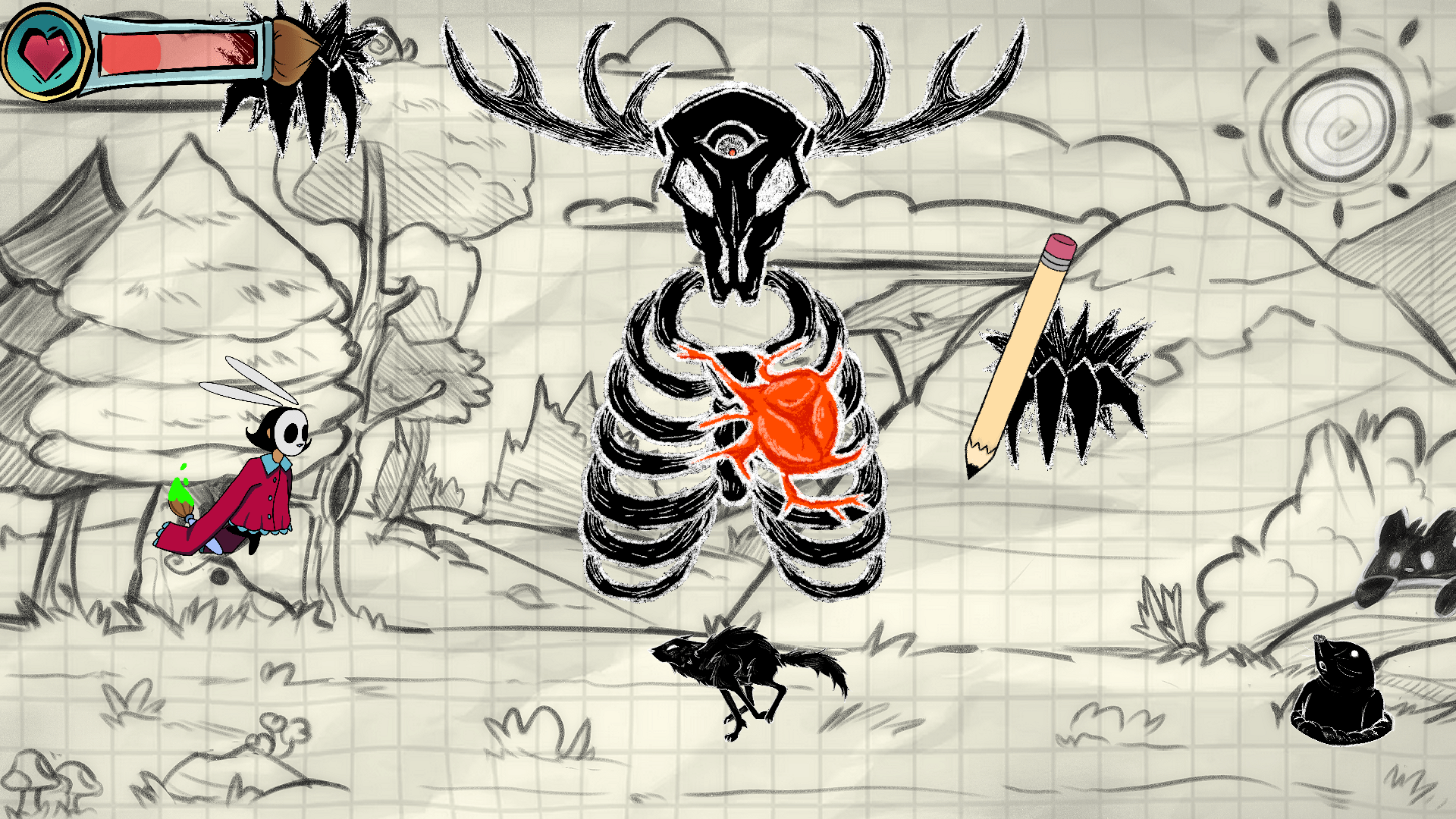 In a world of doodles and sketches, Nara the protagonist fights against invading drawings in her drawn world.